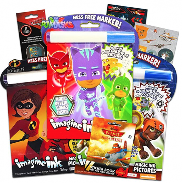 Although the colors are vibrant and look great on the page, the magic ink pen can’t leave a stain anywhere so you don’t have to worry about cleaning up afterward. Plus, the marker often stores in a plastic flap in the front of the book so no more fishing around in the back seat trying to find the lost marker between coloring sessions! We can practically hear your sigh of relief all the way from here!