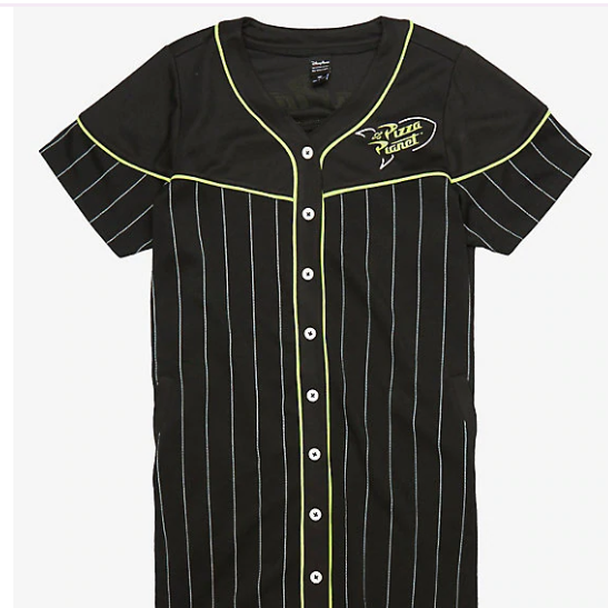 This athletic style Jersey dress looks like the perfect baseball jersey – but it celebrates Pizza Planet! It features one of the little green aliens back, and it has pockets as well. The regular-sized dress is $39.90, while the plus-sized one is $44.90.