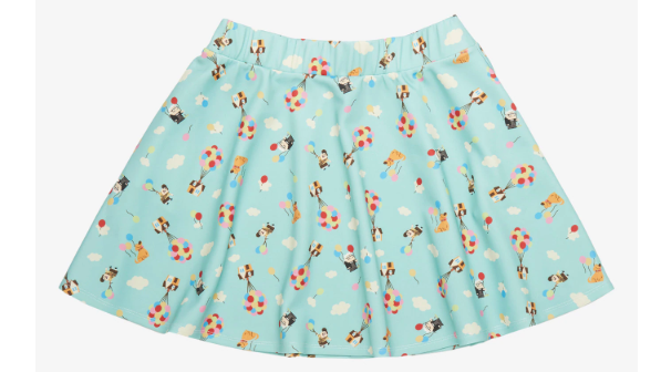 The first two pieces from the new collection are from the 2009 movie UP. The Her Universe Pixar Celebration Icons Skater Skirt comes in both regular juniors and juniors plus sizes, which is great for size inclusivity. And it looks the perfect summer skirt.
