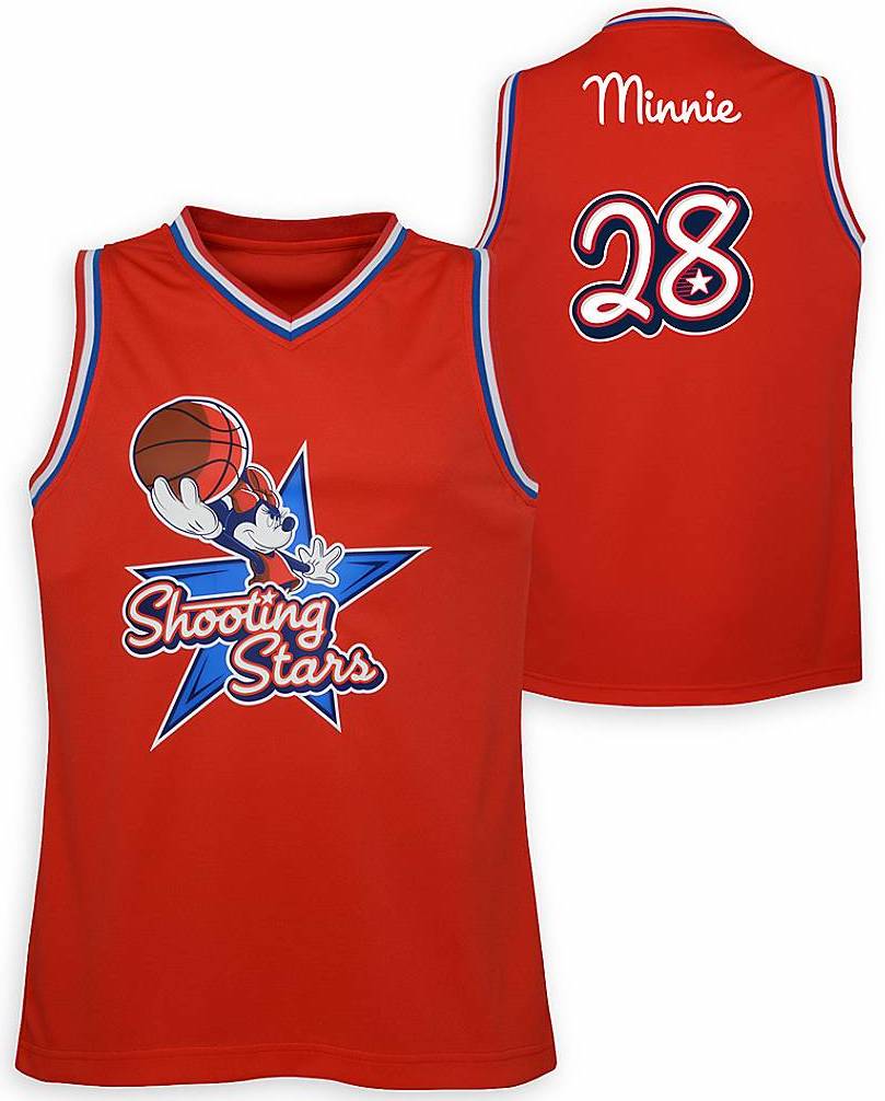 Represent your love for Minnie Mouse and the Shooting Stars with this adorable NEW Minnie Mouse Shooting Stars Basketball Jersey for Adults!