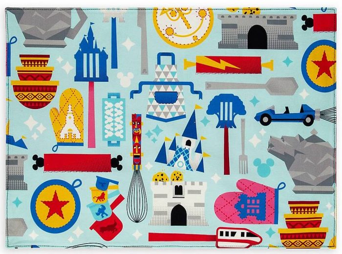 But there’s a surprise! These placemats are reversible!! The other side of each placemat features a fun pattern of Disney Parks-inspired kitchen décor!