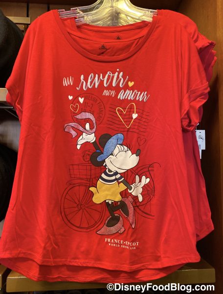Here she is again, on the “Oh La La” Minnie Shirt for $29.99.