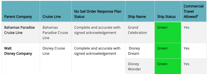 Great news that these two ships have moved into code green status. However, please note that the Cruise Lines International Association (of which Disney Cruises in a member) announced an extension in the voluntary suspension of global cruise operations for its members yesterday until October 31, 2020.