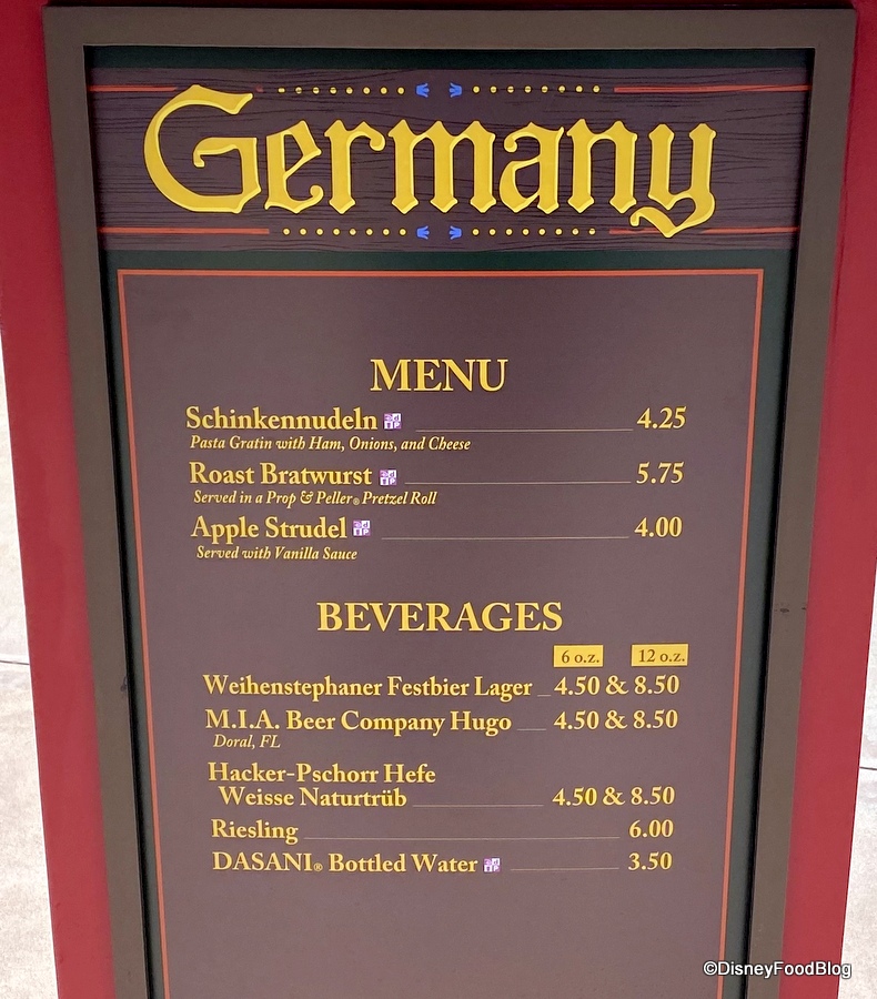 For instance, many of the EPCOT Festival Booth menus still have Disney Dining Plan logos. We originally noticed them during the Taste of EPCOT International Food & Wine Festival last fall and we’ve since seen them on menus at the Taste of EPCOT International Festival of the Holidays, the Taste of EPCOT International Festival of the Arts, and the Taste of EPCOT International Flower & Garden Festival.