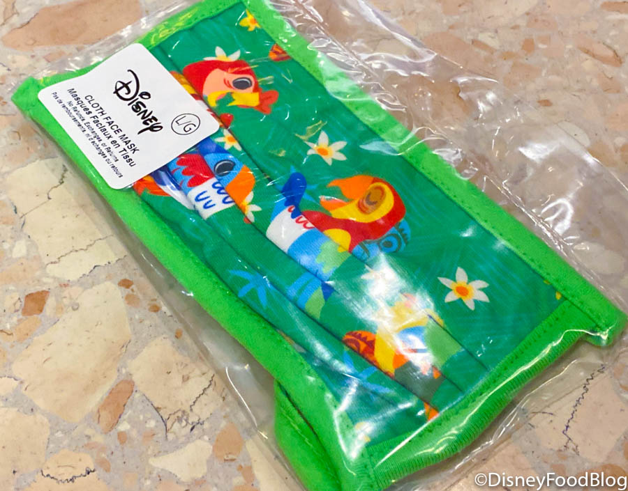Today it looks like some of the new Disney face mask designs have landed at Magic Kingdom! Let’s check out which styles they have in stock, shall we? Each mask we’re about to show you costs $6, including this enchanting Tiki Room mask we first laid eyes on last week and knew we HAD to own it!