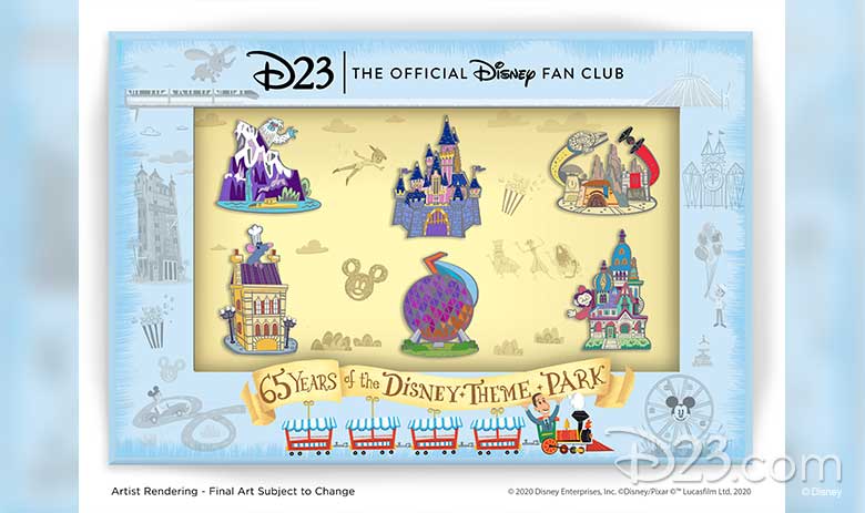 But this special issue isn’t the only way D23 is taking part in the celebration! D23 Gold and Gold Family members will be able to purchase an exclusive pin set on shopDisney. The set includes six pins with designs pulled from Ricky de Los Angeles’ cover of the fall issue. It includes Sleeping Beauty Castle, Mystic Manor from Hong Kong Disneyland, and Star Wars: Galaxy’s Edge! The pin set will retail for $49.99, available while supplies last.