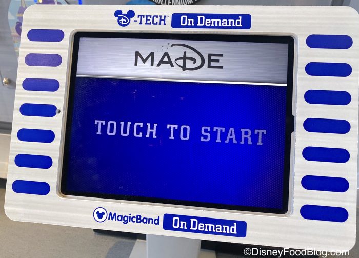 As we were walking around Magic Kingdom, we stopped by Tomorrowland Light & Power Co., the gift shop next to Space Mountain, and found a fun way to commemorate the return of MLS at Disney! In this shop, you will find a D-Tech On Demand kiosk where you can make some custom Disney products! You can also find these D-Tech on Demand kiosks in other areas around Walt Disney World. (Um…Kitchen Kabaret fans you’re totes gonna want click on that last link rn.)
