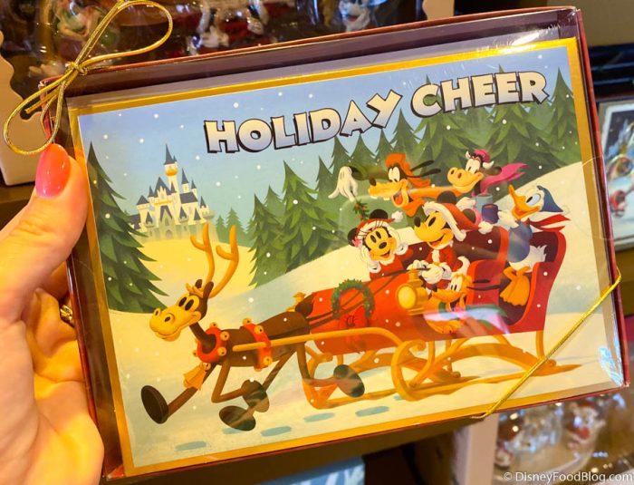 Interestingly enough, we actually spotted some new Christmas offerings at Ye Olde Christmas Shoppe in Frontierland. There are these adorable new-to-us Christmas Cards for $19.99…