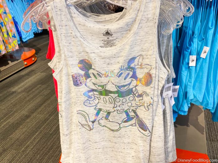 At Mouse Gear we spotted a new-to-us set of fun Metallic Tank Tops! There’s a Metallic Mickey Tank…