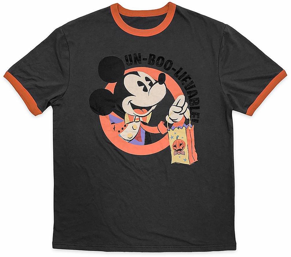 This next shirt will make your Halloween adventures un-boo-lievable! Mickey Mouse is all dressed up and ready for some treats in this new Mickey Mouse Halloween Ringer T-Shirt for Adults.