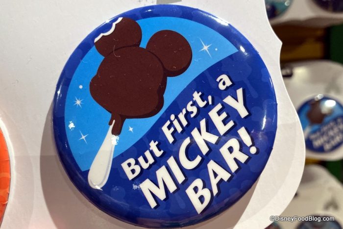 And the other button in the pair reminds you of PRIORITIES, people… “But First, a MICKEY BAR!”