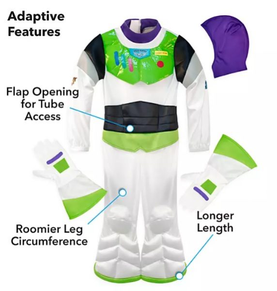 And if your little one wants to travel to infinity and beyond this Halloween, there’s also a Buzz Lightyear Adaptive Costume for Kids. This one-piece bodysuit comes with an open rear for easy wheelchair weat, a flap opening for easy tube access and a vinyl chest panel featuring Buzz’s classic buttons. This costume is also $49.99.