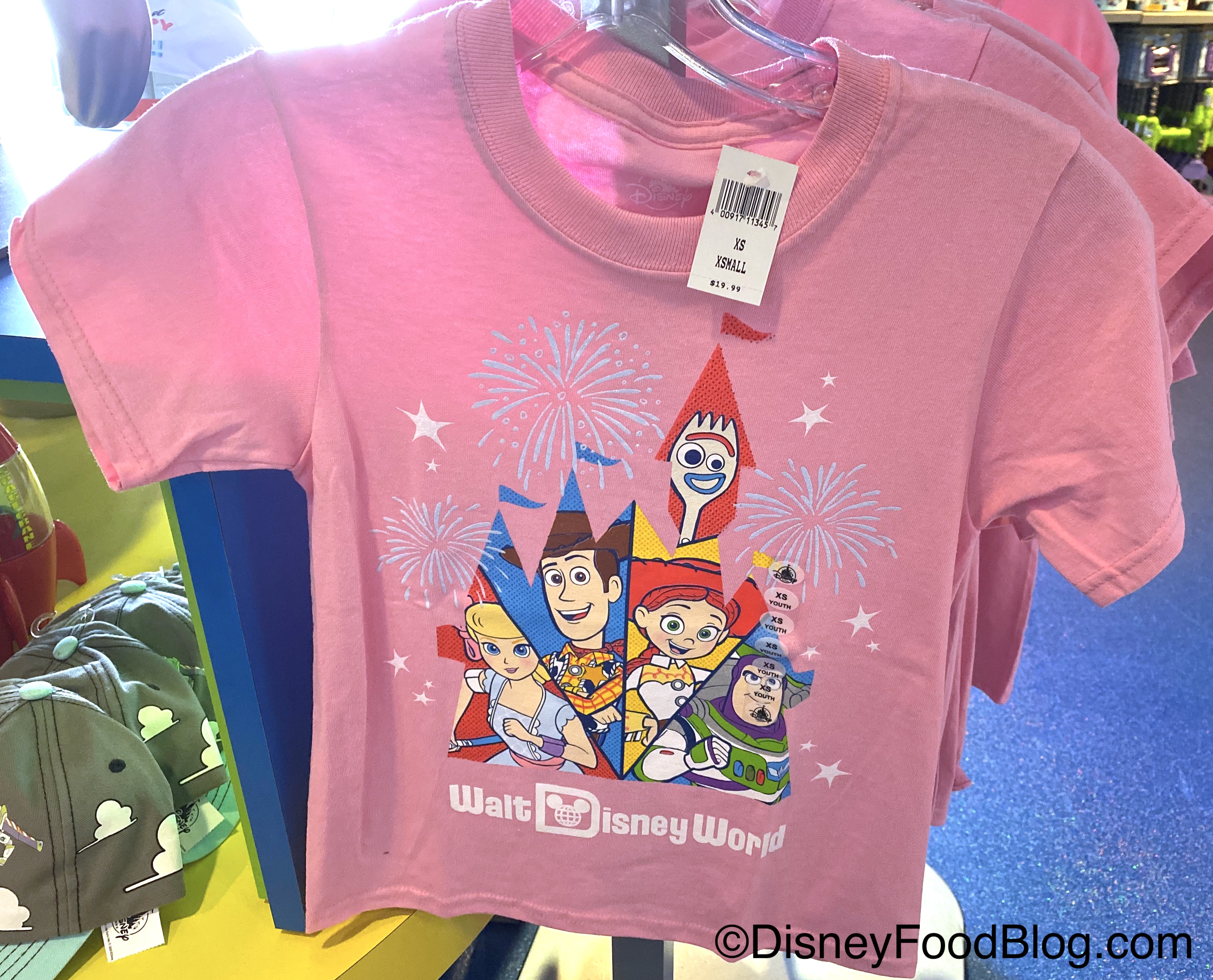 During our last trip to Magic Kingdom, we stopped by Buzz Lightyear’s Space Ranger Spin Photos, which is the gift shop you walk through after you’ve defeated the evil Emperor Zurg on Buzz Lightyear’s Space Ranger Spin. There, we found this adorable Toy Story 4 Kids Shirt featuring our favorite characters contained in the shape of Cinderella Castle.