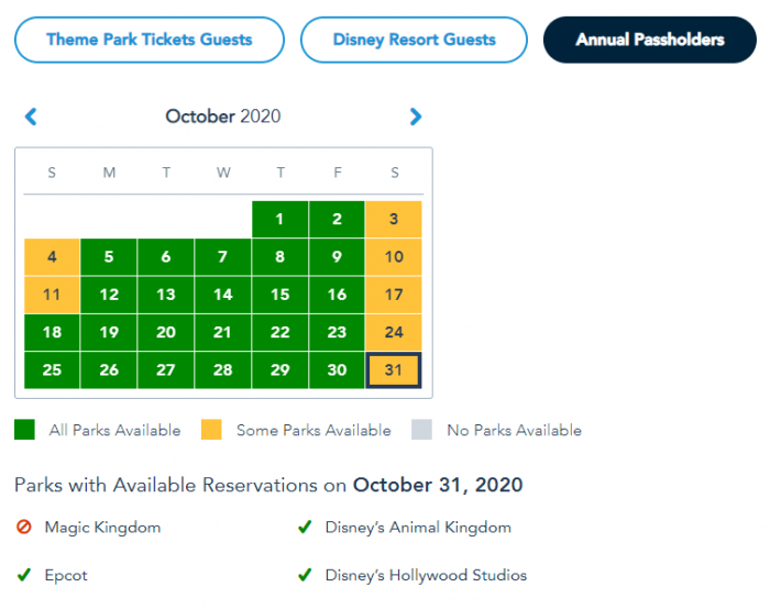 If you’re hoping to head to Disney for the days around Halloween, you might want to make arrangements soon — especially if you’re an Annual Passholder! Who knows how quickly these popular days could fill up?