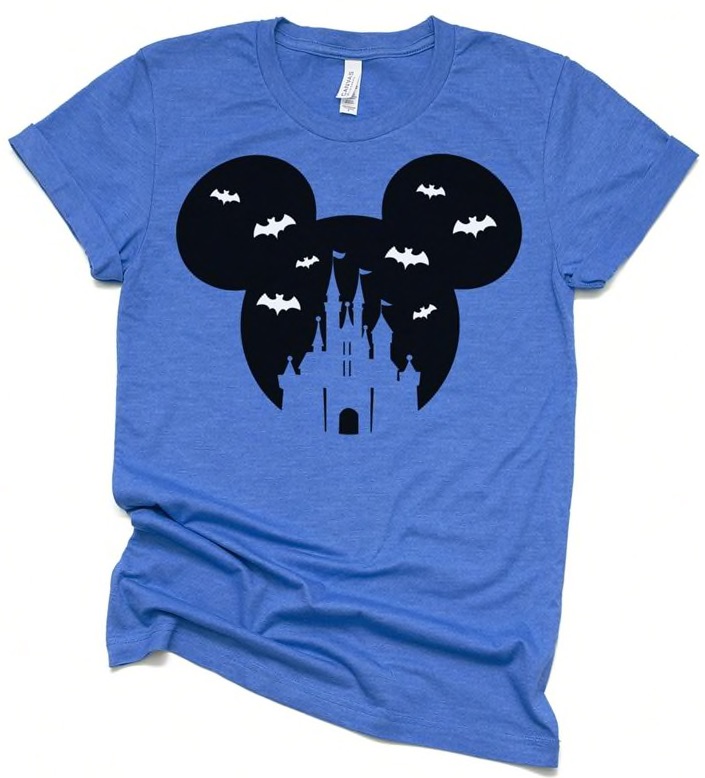 These shirts are only available for a few more hours, so you’ll want to act quickly! There are 8 fun Disney-inspired Halloween shirts you can bring home with you that will make you and your whole family look fa-boo-lous! First, we found a Mickey Bats shirt featuring a classic Mickey design with the castle in the center and lots of spooooky bats flying about.