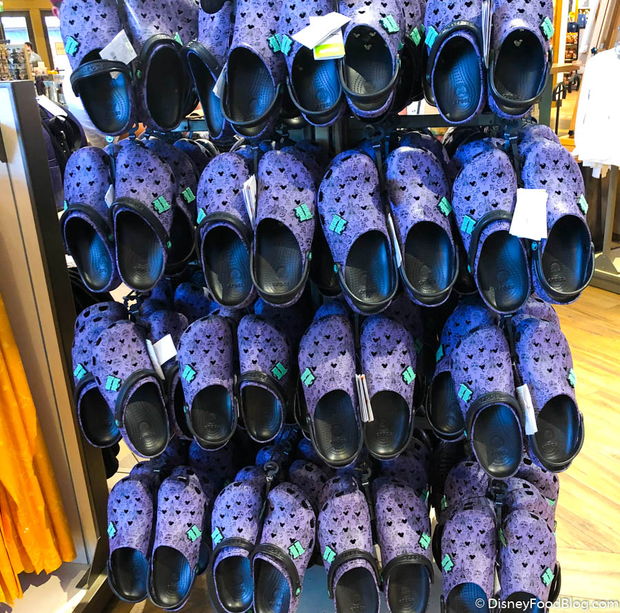 But, don’t be scared! We spotted a whole display full of the new clogs over at World of Disney in Disney Springs. It looks like there’s room for a few more to get their Haunted Mansion Crocs.