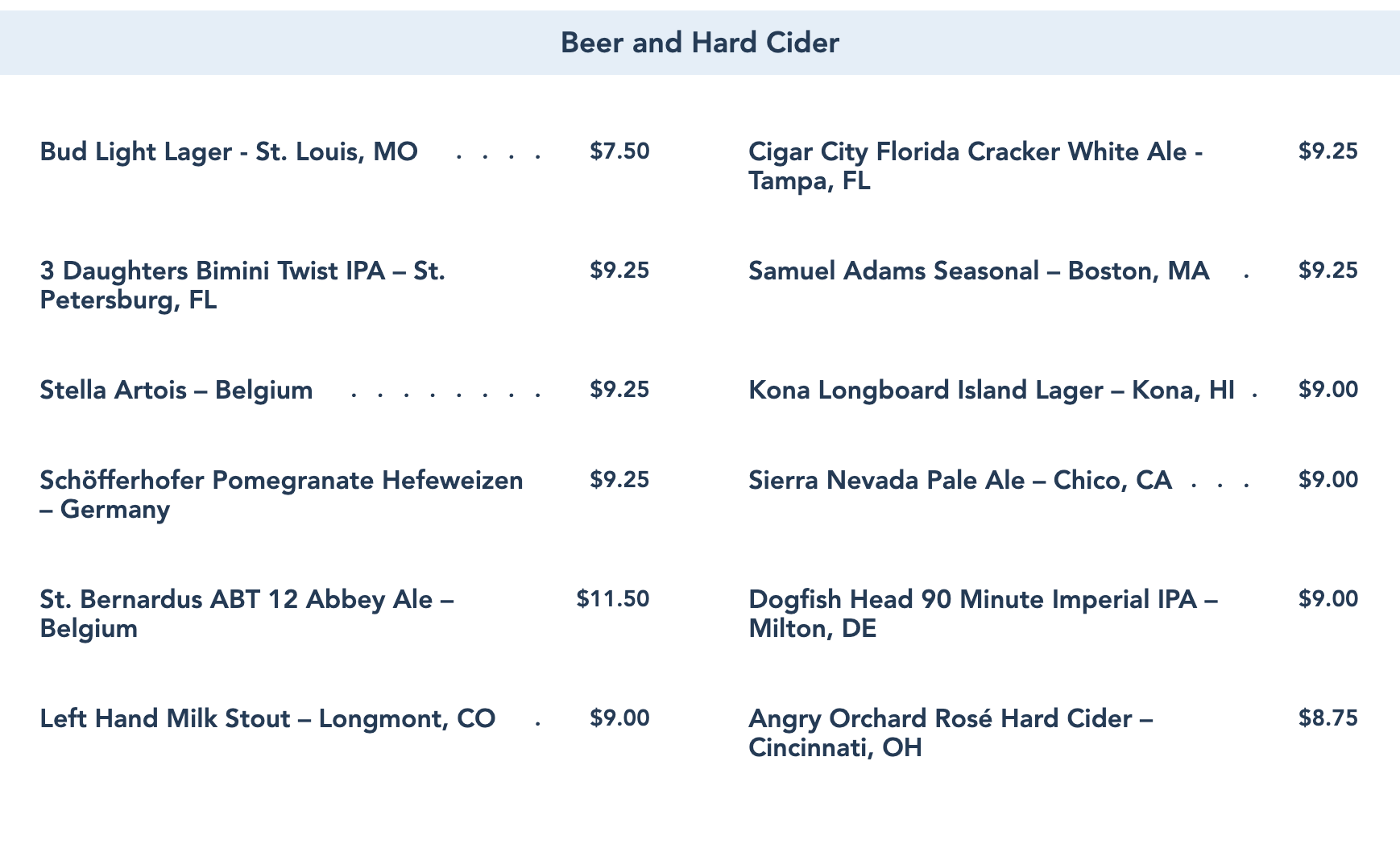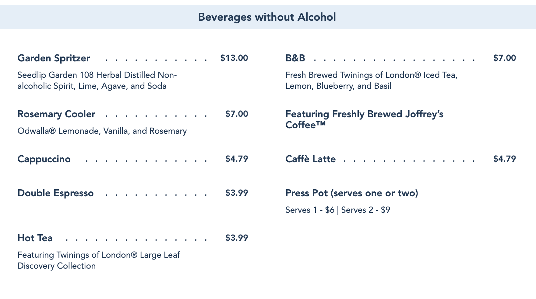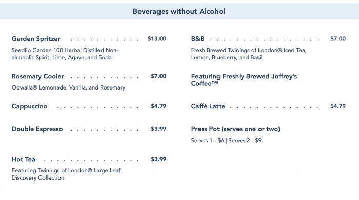 Non-alcoholic refreshments are available as well (and some of the most unique we’ve seen on property!).