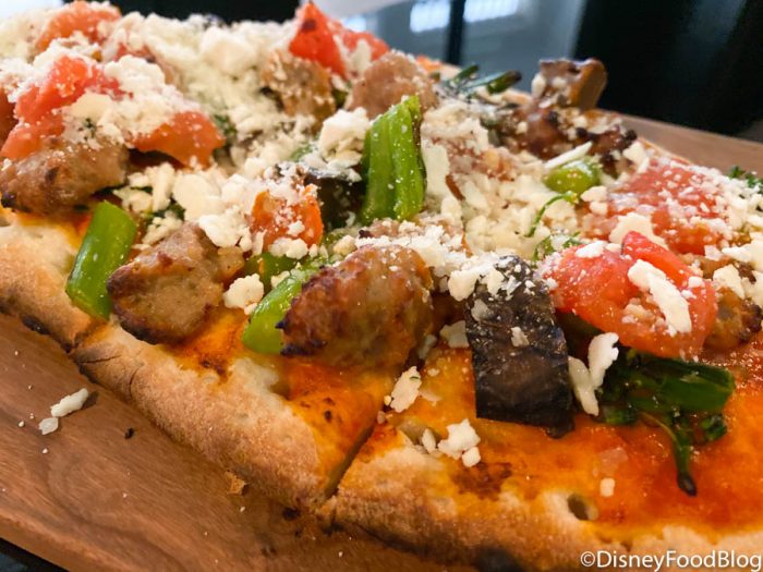 The veggies tasted really fresh while the crust was nice and crispy! All of the flavors of the toppings blended together really well and we especially loved the seasonal mushrooms. They lent a nice texture and earthiness to the flatbread. The sausage was really savory and packed with tons of flavor too!