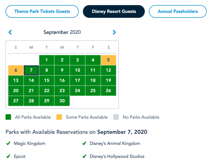 There are also currently Disney Park Passes available for Disney’s Hollywood Studios on Monday, September 7th, but the rest of the holiday weekend is already sold out for guests with theme park tickets!