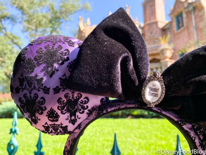 We’ve got some great news for folks who are heading to Magic Kingdom today — in addition to picking up your new Lilac Minnie ears, the Haunted Mansion Wallpaper Minnie ears have also taken up residence at the park!