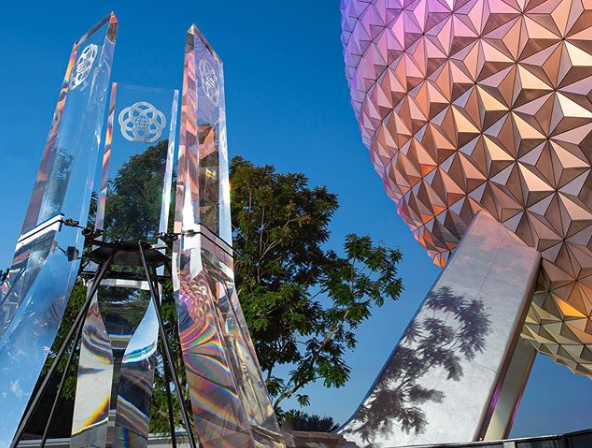In case you’ve slept on the EPCOT news the week, three clear acrylic pylons were recently installed in front of Spaceship Earth as part of a new entryway fountain for World Celebration — one of three new distinct neighborhoods Future World is being divvied up into.