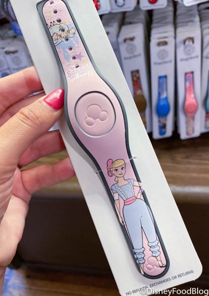 And now we’ve got soooo many more new MagicBand styles to show you! Cue the lights and think of these next few minutes you’ll be spending with us as a MagicBand fashion show! First up, check out this stylish Bo Peep Magicband coming down the runway!