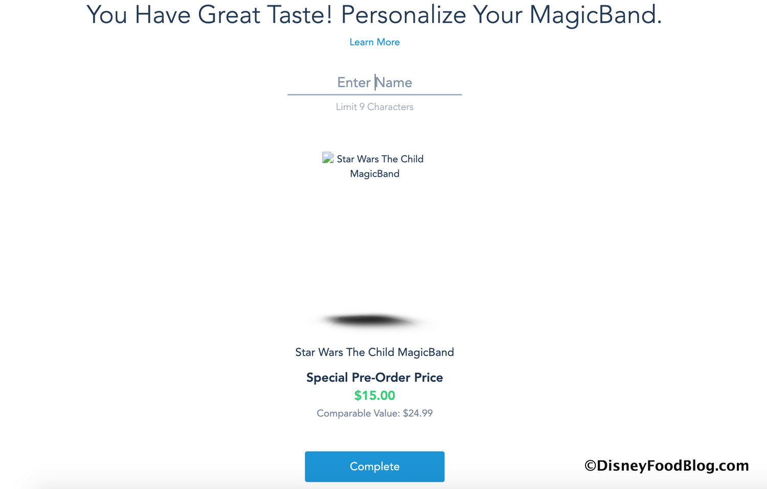 So, when we recently noticed there was a Star Wars The Child MagicBand available to order in our account, we were super excited for more Baby Yoda cuteness. Until we realized something was missing — there was no photo showing for The Child MagicBand!
