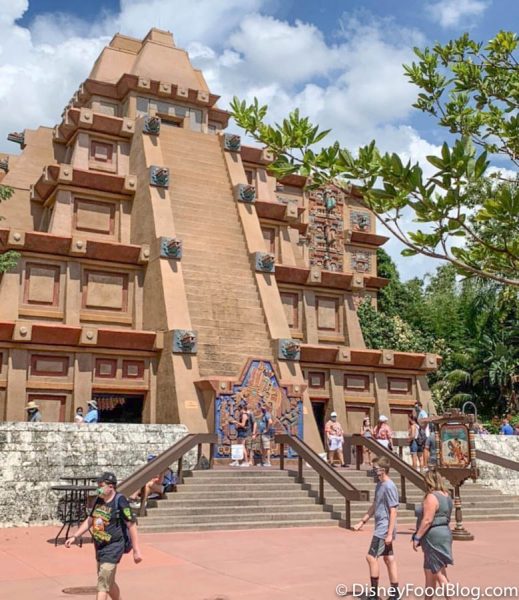 When we’ve returned back to the Mexico Pavilion, we’ve noticed markers on the ramps inside the pavilion to show guests which way they should be entering and exiting the area. However, thanks to our reader @walruscarpclothing, we were able to see that there are even more distancing measures in place outside the pyramid for times that it reaches capacity.