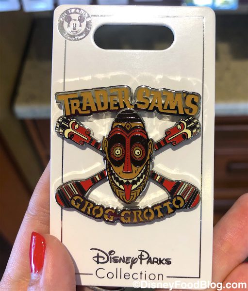 Even though Trader Sam’s Grog Grotto in Disney’s Polynesian Village Resort is still closed, you can get your tiki fix with the new Trader Sam’s Grog Grotto Pin we spotted in Disney Pin Traders.