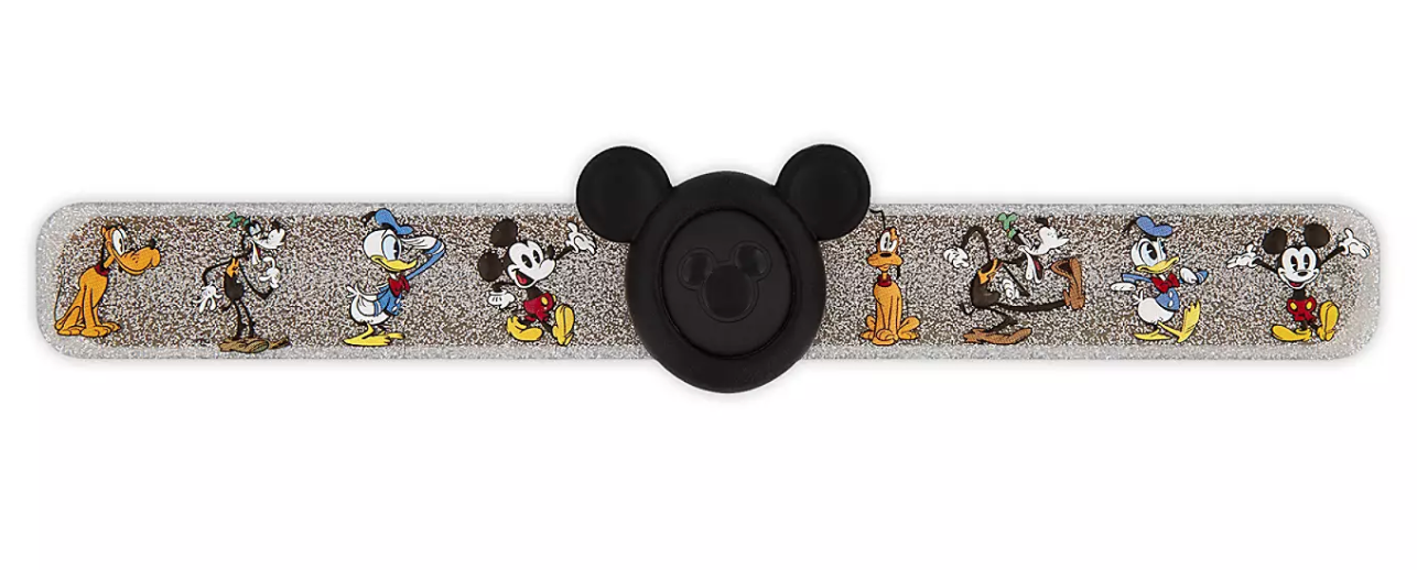 Check out this Mickey and Friends MagicBand for $24.99 with a silver glittery slap bracelet!