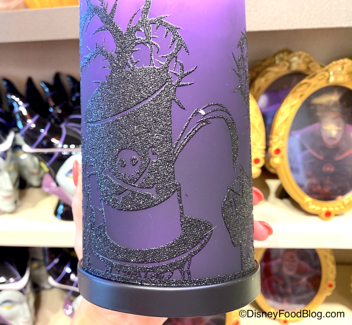 Want to really light up a room with all of your evil plans? Then check out this Disney Villains Lantern. Phrases and outlines of our favorite villains are featured on top of the purple lantern. Can you spot Ursula and Dr. Facilier’s hat?