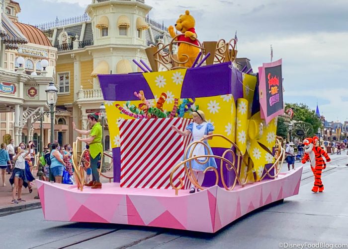 Then there’s the Fantasyland Friends Cavalcade. On the surface level, it sounds great. All our Fantasyland pals together at once? Awesome! But in practice it really is just random Disney characters all tossed together on a float. Mary Poppins, Alice, Peter Pan, Winnie the Pooh, and Aladdin? Not the combo we necessarily would have picked.