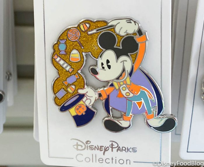 Magician Mickey was seen in the window displays at World of Disney. Watch out! He’s about to make all your Halloween candy disappear in this new pin. This magical pin is $9.99.