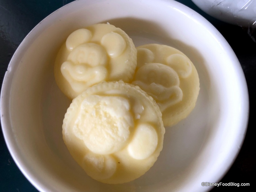 Believe it or not, you can STILL find Mickey Butter at some spots in Disney World (like this beautiful bounty of Mickey-shaped butter pads that came with our room service at Disney’s Wilderness Lodge!). But alas, Mickey Butter is a rare creature these days!