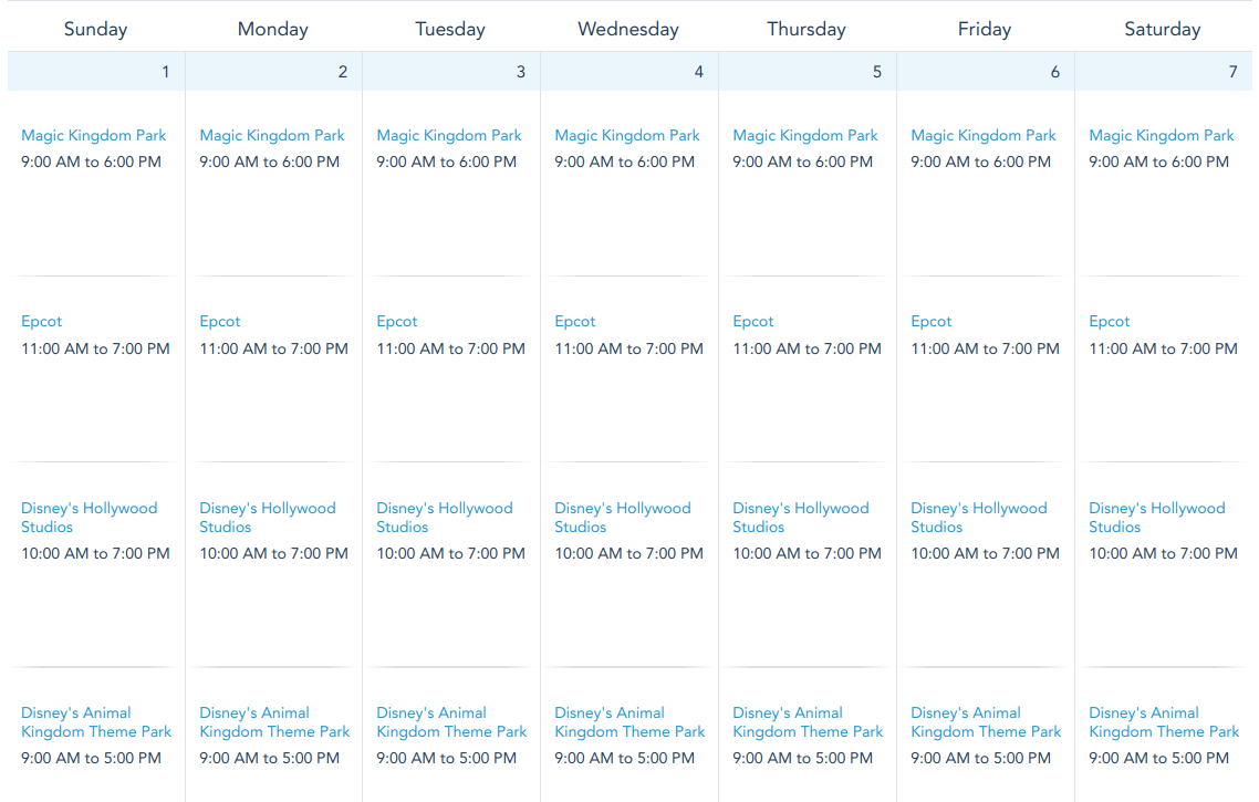 It looks like all four parks will be staying at the reduced hours that will begin on September 8th. Magic Kingdom will be open from 9AM-6PM. EPCOT’s hours will be from 11AM-7PM. Disney’s Hollywood Studios will be open from 10AM-7PM. And the park hours for Disney’s Animal Kingdom will be 9AM-5PM.