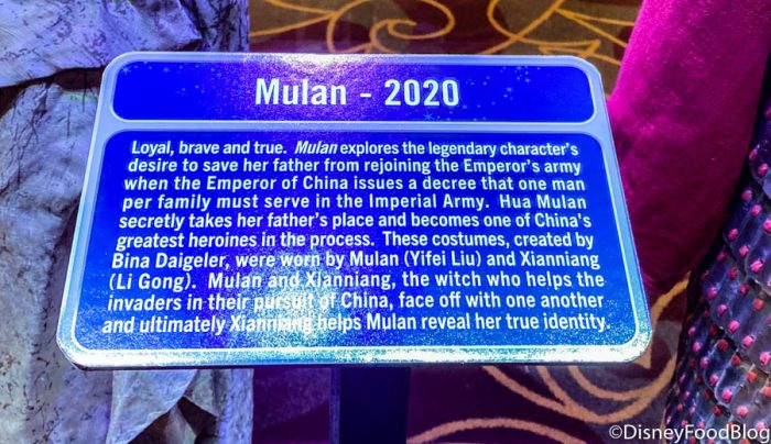 A few days ago, Disney announced that a special glimpse of some scenes from the new live-action Mulan would be coming to Disney World! But that’s not all — an authentic replica of a warrior costume and sword and an original witch costume used in the film are now on DISPLAY! Being the huge Mulan fans that we are, we had to go check them out!
