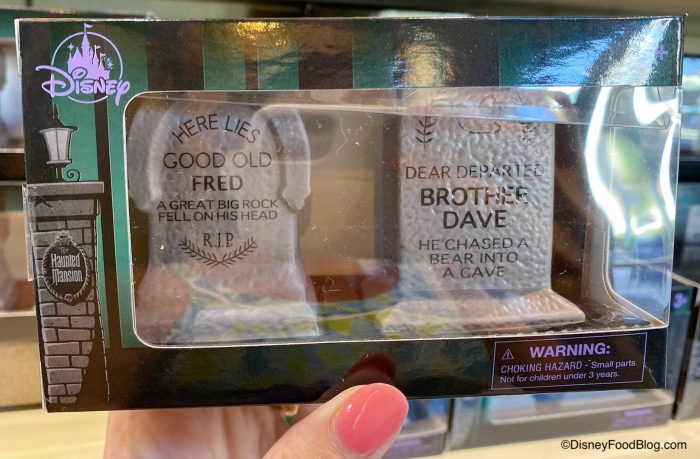 One item that we’ve really seen flying off the shelves though is The Haunted Mansion Tombstone Salt and Pepper Set. It has been nearly impossible to find in the parks!