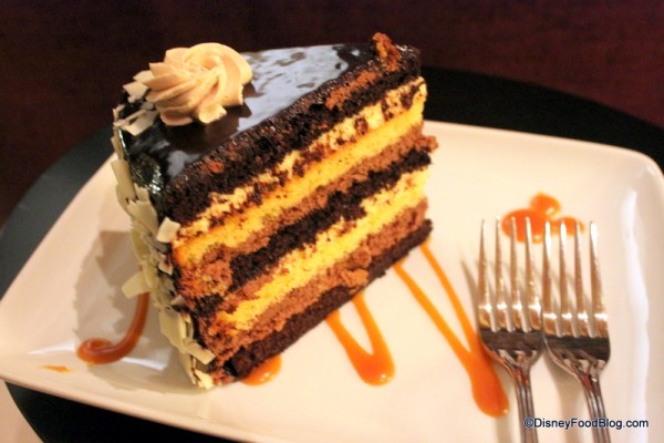 However, we were surprised (and more than happy) to find that the Seven Layer Cake has resort-hopped on over to The Wave at Disney’s Contemporary Resort! When we checked the official menu at the restaurant, the cake wasn’t listed as one of the offerings during this time. BUT, that just means that The Wave is serving up a secret item for everyone who decides to visit.