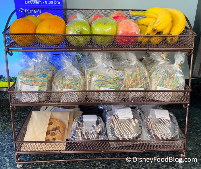 Snacks are plentiful here as well! From fruit to cookies and Krispie treats, there’s an assortment to choose from.
