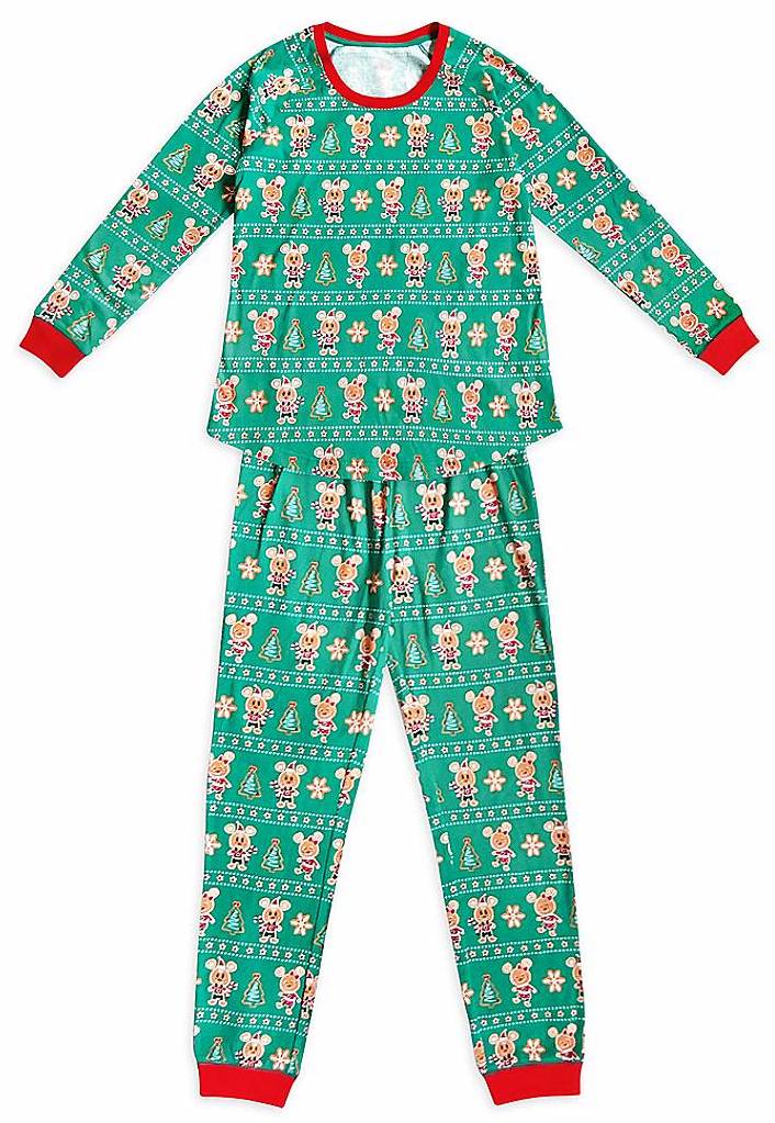 The holiday fun continues with the Mickey and Minnie Mouse Holiday Pajama Set for Women. This comes as a two-piece set with the shirt and pants. The red features on the wrists and ankle cuffs really pop against the green of the holiday pattern.