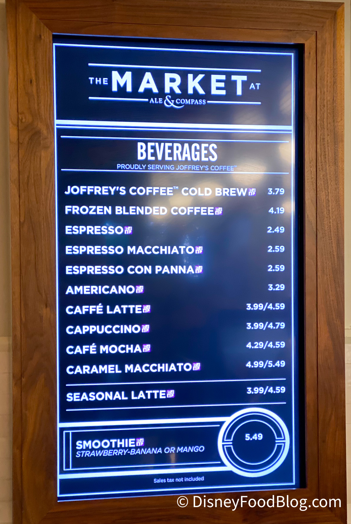 The Market at Ale & Compass is a convenient counter service location at Yacht Club, perfect for that on-the-go food stop on your way to the parks. They serve Joffrey’s Coffee at The Market, to give guests their morning pick-me-ups!