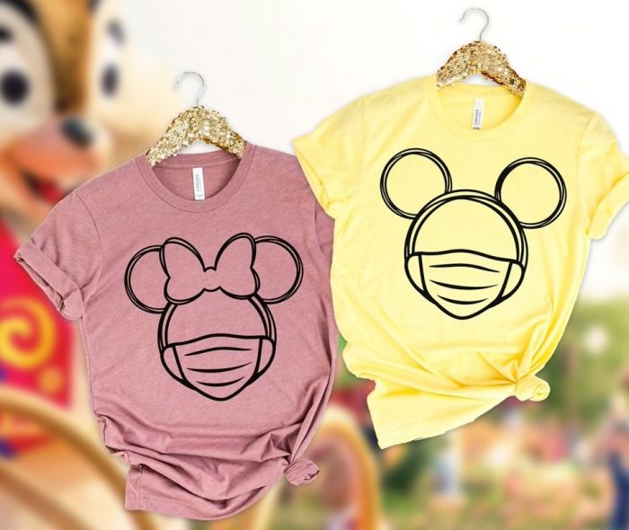 The shirts with the Mickey and Minnie outlines with masks on are great for those looking for a simple design.