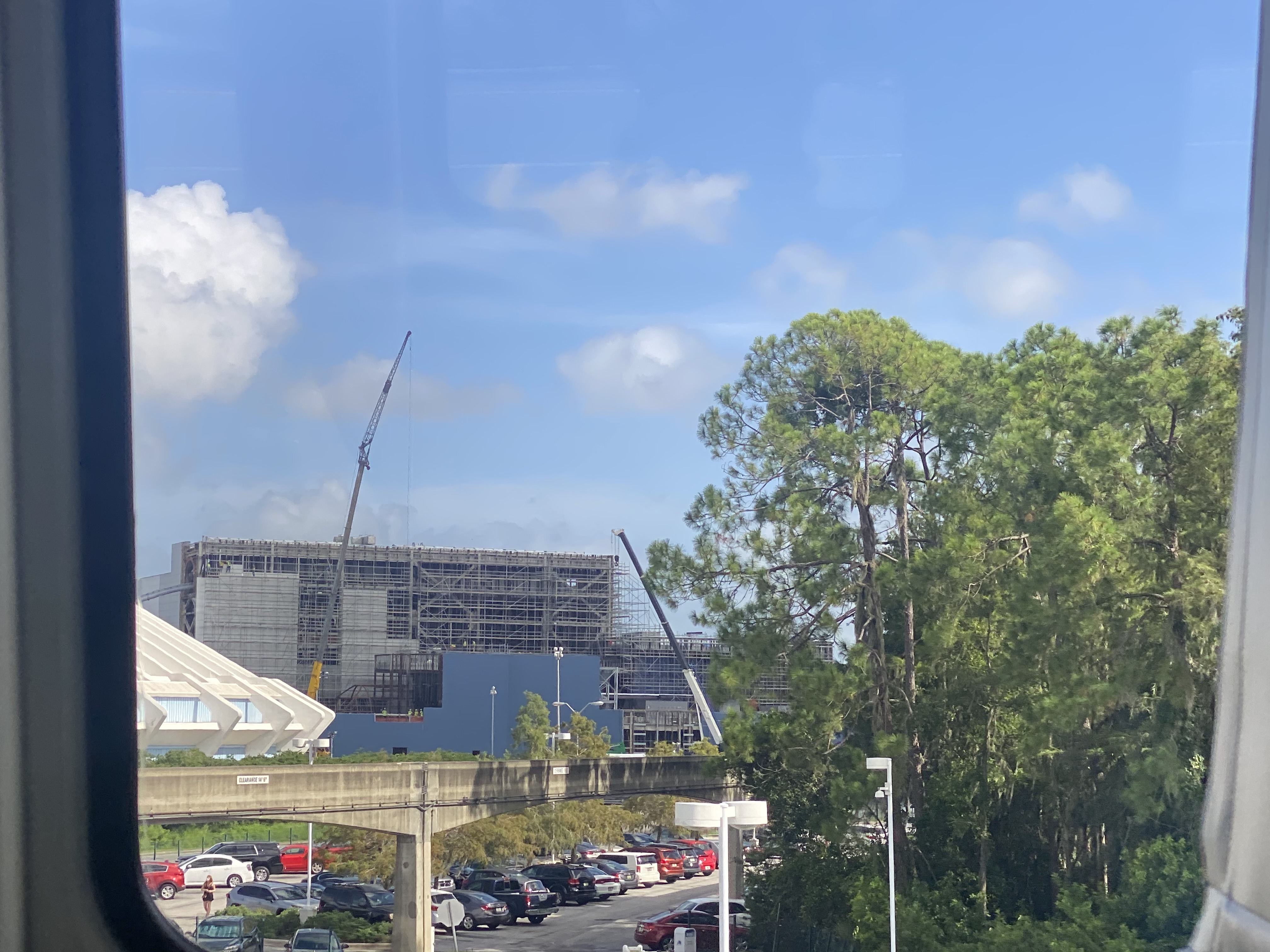 TRON Lightcycle Run is a rollercoaster that will be based on the Disney movie, TRON. This attraction has seen a steady progression since the park reopened. We got another look at the construction this week! While riding the monorail, we spotted painted blue walls being installed around the coaster’s indoor structure. Things are movin’ right along!