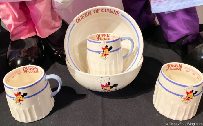 Chef Minnie has her own line of kitchenware, too! Be on the lookout for the “Queen of Cuisine” to make an appearance on some bowls, mugs, coasters, potholders, and an adorable apron!