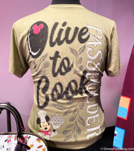 Annual Passholders once again have their own exclusive merchandise to shop this year, including this olive green tee that says “Olive to Cook” (get it?).