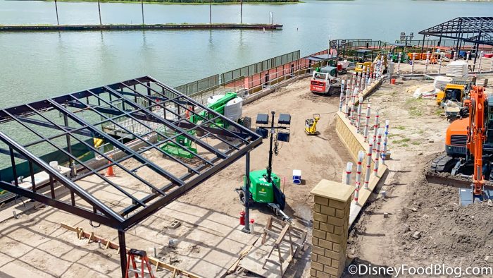 We also spotted some construction today near the monorail station. There’s no official confirmation yet of what the purpose of this area will be exactly, but it does look like the structures to hold some tents have been built.