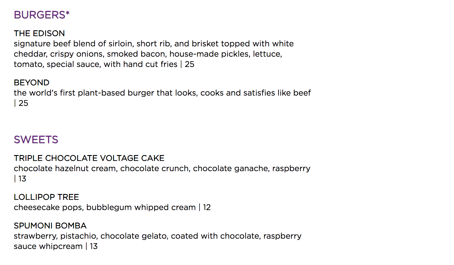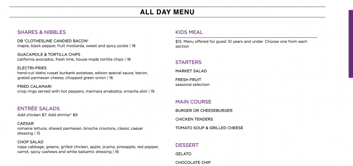A few crowd-favorite desserts and entrees made the cut! The popular Edison Burger and Lollipop Tree with bubble gum whipped cream are still available. The Edison Burger is so nice, we reviewed it twice!