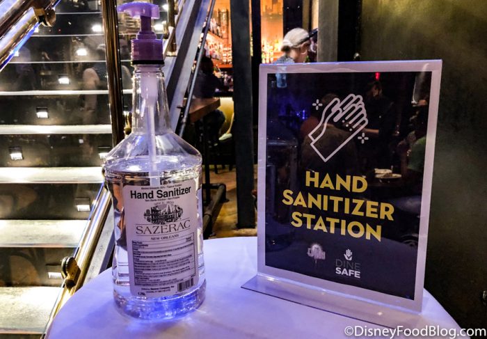 Even the hand sanitizer is themed correctly! Sazerac (yes, like the drink Sazerac) liquor company responsible for spirits like Southern Comfort began producing their own hand sanitizer from their distillery. The Edison cleverly chose the Sazerac Hand Sanitizer to accompany their prohibition-era theme.