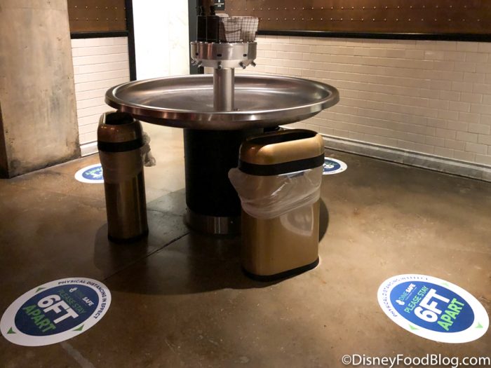Outside, you’ll see physical distance markers on the ground leading to the entrance. These are meant to allow for space between guests while you wait to be checked-in. There wasn’t much of a line when we visited, but this could change once things start to pick up. We suggest you arrive at the restaurant about 15 minutes early to give yourself plenty of time if there are any lines.