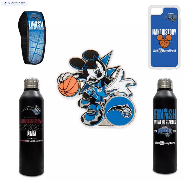 Each collection contains a “Make History” iPhone Case for $29.99, an “NBA 2020” iPhone Case for $34.99, a “Finish What We Started” MagicBand 2 for $24.99, a “Finish What We Started” Stainless Steel Water Bottle for $29.99, a “Whole New Game” Stainless Steel Water Bottle for $29.99, and a Mickey Mouse NBA Experience Pin for $12.99.